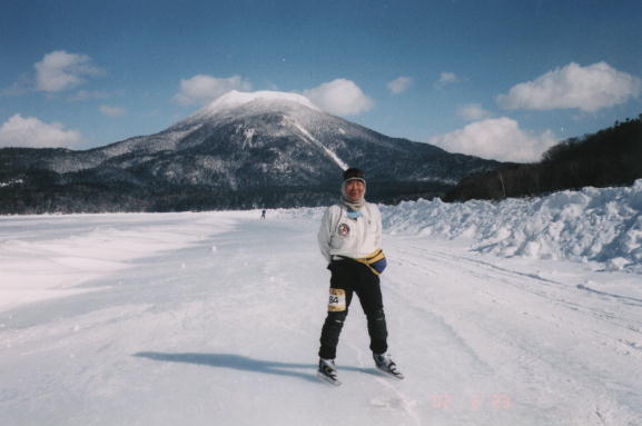 レースは25K、50K、100K、200K、ツアーとスピード100K、200K、その他500M直線、等が有ります私の参加したのは50Kツアーで、朝7時発走で日没までに完走する事でした。 氷は関係ボランテイアが数日夜を徹しての献身的整備したそうですが、凸凹が酷く、割れ目が縦横に走り、リンクでは考えられない状況で5回も転びました |